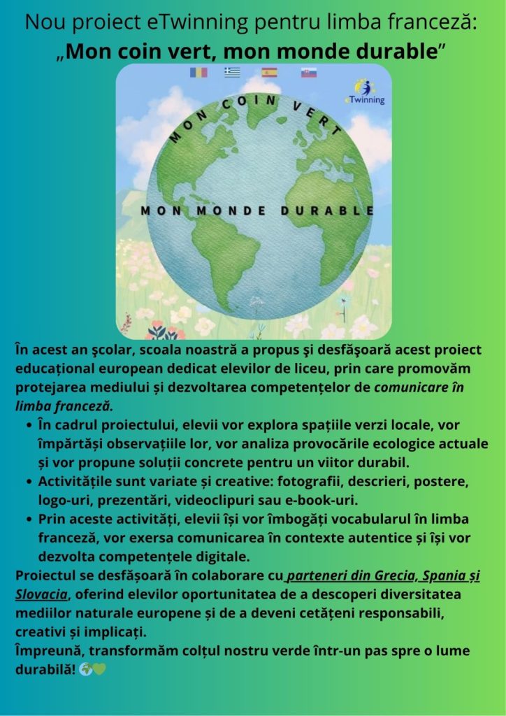 Proiect eTwinning “Mon coin vert, mon monde durable”