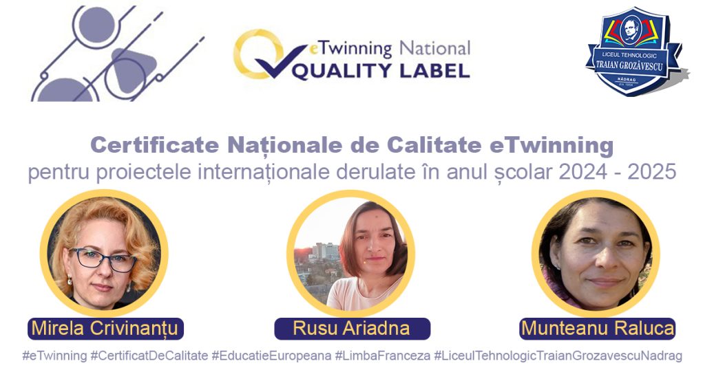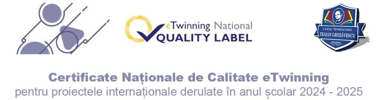 Școala noastră se mândrește cu obținerea Certificatelor Naționale de Calitate eTwinning pentru proiectele internaționale derulate în anul școlar trecut.